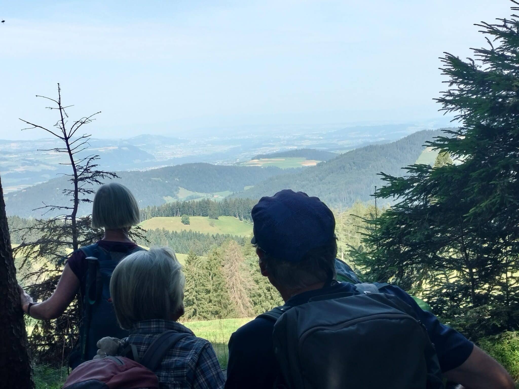 Die Leitenden wussten selbstverständlich die Namen der Dörfer im Tal, der Hügel, der Berge; nur das Greenhorn, das diesen Bericht schreibt, kann die Namen nicht behalten. Die Panther wandern nicht nur gern und springen mit oder ohne Stöcke über Hürden, sie lachen auch gern. Jemand holt Tinu Heinigers «Lied vo de Bärge» aus dem Handy: