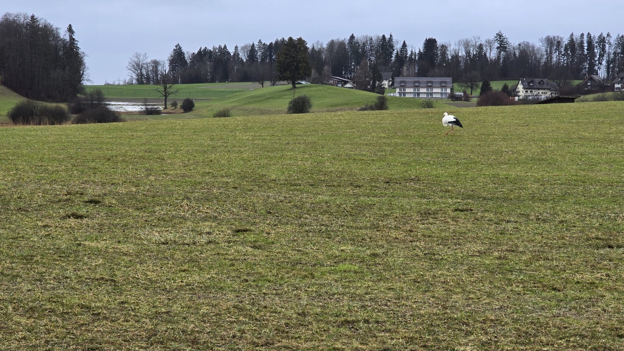 Im Schaugarten könnten wir einen kräftigen Zierbaum auswählen. Ein Rotbrüstchenpaar ist auch grad dran, sich das schönste Plätzchen auszusuchen. Gemähte Schilfflächen breiten sich aus. In einem riesigen Baum beim Bauernhaus sehen wir riesige Mistelbüsche – die sich dann als Storchennester erweisen. Und später sehen wir auch noch 5 ihrer Bewohner am Futterpicken.