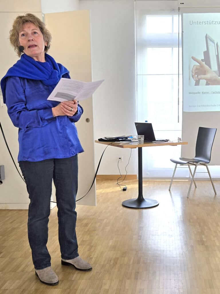 Susanne Kast stellte sehr eindrücklich dar, warum soziale Teilhabe, und nicht nur Anwesenheit, für uns alle so wichtig ist. Dieses Teilhaben am gesellschaftlichen Leben bedingt heute eben auch, sich ein gewisses Mass an digitaler Kompetenz anzueignen. Als Bildungsfachfrau weiss sie natürlich auch ganz genau, von welchen Argumenten unseres inneren Schweinehundes wir uns gerne blockieren lassen. „Das lerne ich ja sowieso nie“, „Das interessiert mich überhaupt nicht“, „Dafür bin ich einfach zu alt“. Wer von uns hätte es sich nicht schon mal mit ähnlichen Ausreden gemütlich gemacht in der Ecke ohne Herausforderungen.