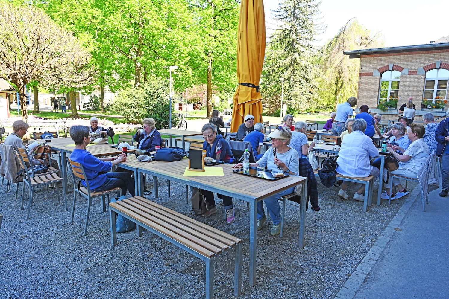 26 gut gelaunte Panther versammelten sich im Bahnhof Bern. Mit der kurzen Zugfahrt nach Münsingen und dem Bus 169 zur Station Allmendweg. Unter der Führung von Krystina und Ursula führte uns der Weg bei schönstem Wetter unter schattigen Bäumen und sonnigen Feldern entlang der Gürbe zum Park der Störche.