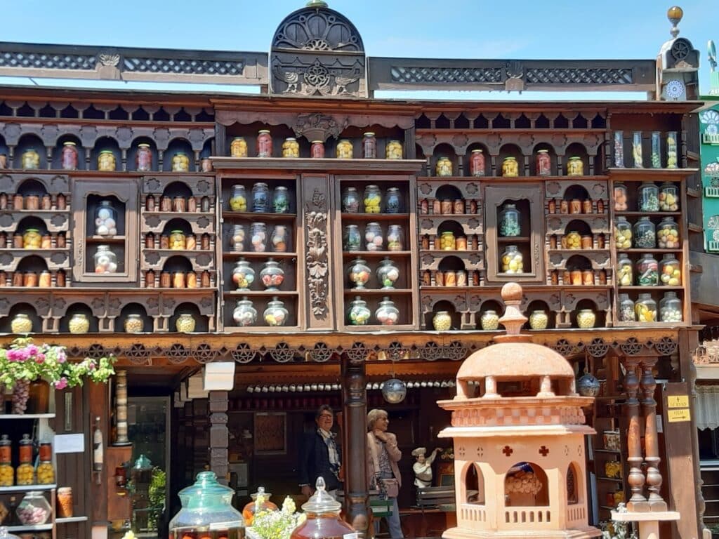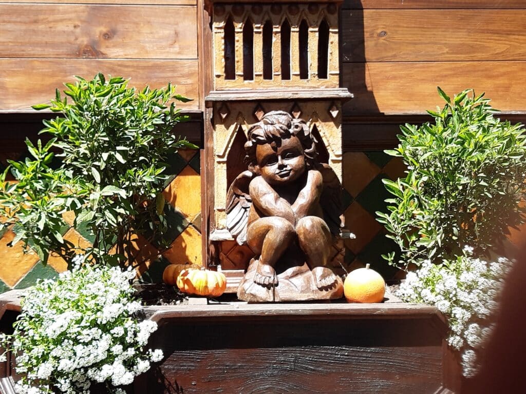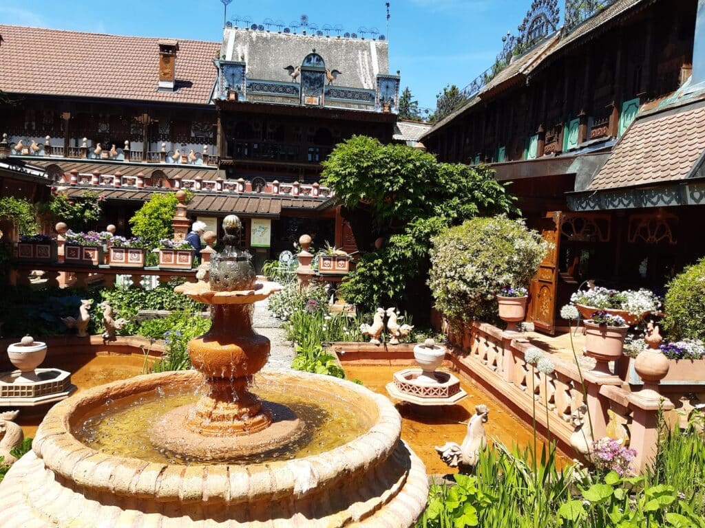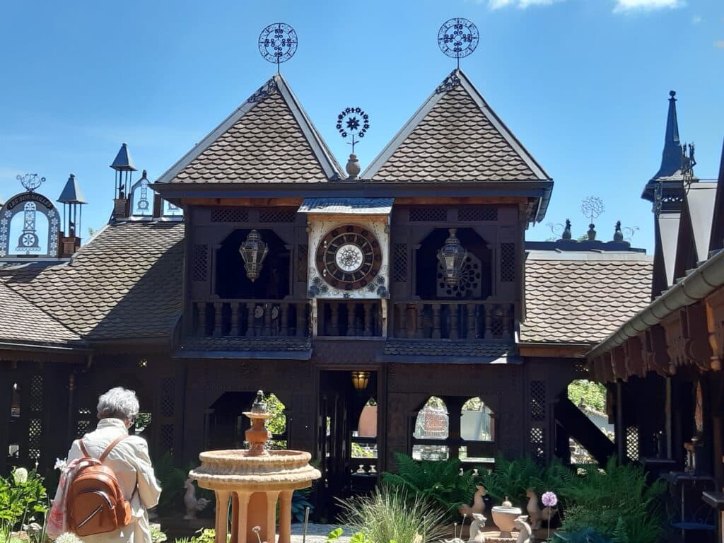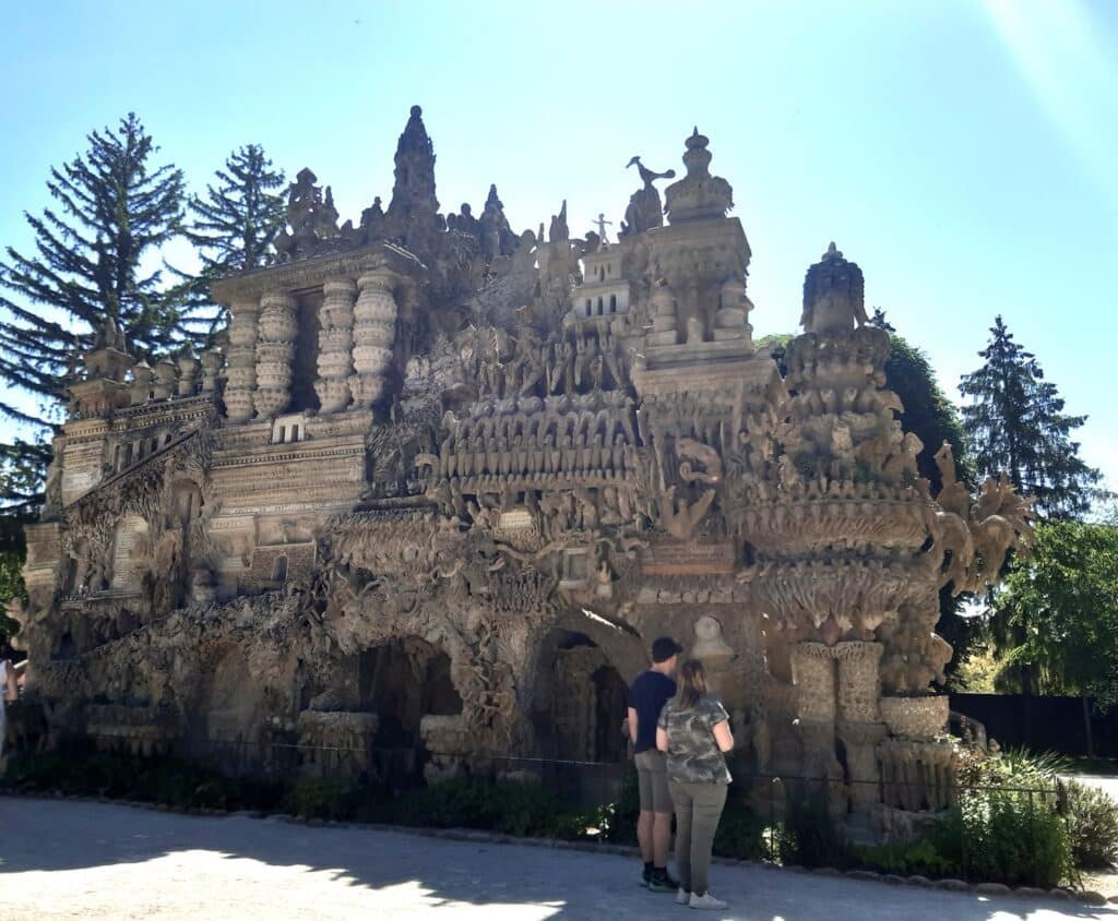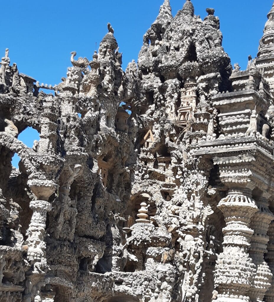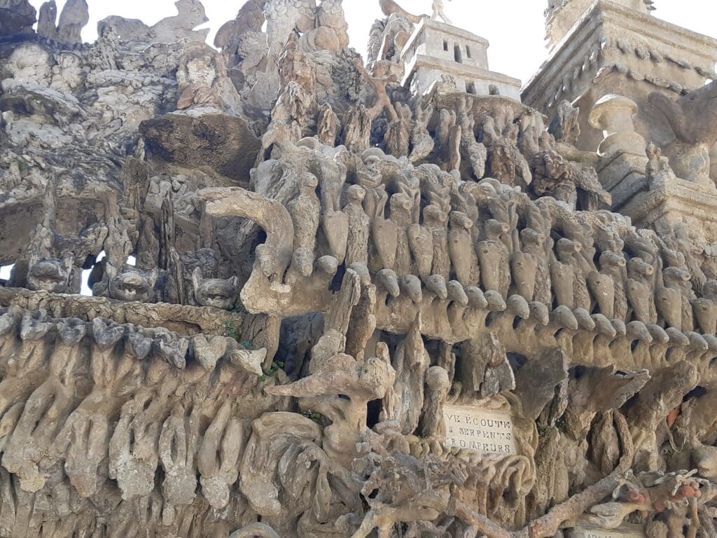 Der vierte Tag brach, wieder einmal viel zu schnell — an. Bei strahlendem Sonnenschein fuhren wir über die Route N7 bis Valence und weiter über Land nach Hauterives. Dieser kleine Ort hatte vor Jahren einen Briefträger, den Facteur Cheval. Er war ein Künstler der ganz besonderen Art, denn erbaute sich während 33 Jahren sein Fantasieschloss aus Zement, Stein und Muscheln: vier Fassaden, mit kleinen Treppen und Gängen und alles in wundervoller Art verziert. Überall entdeckten wirzudem sehr spannende Sinnsprüche.**