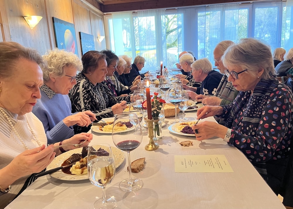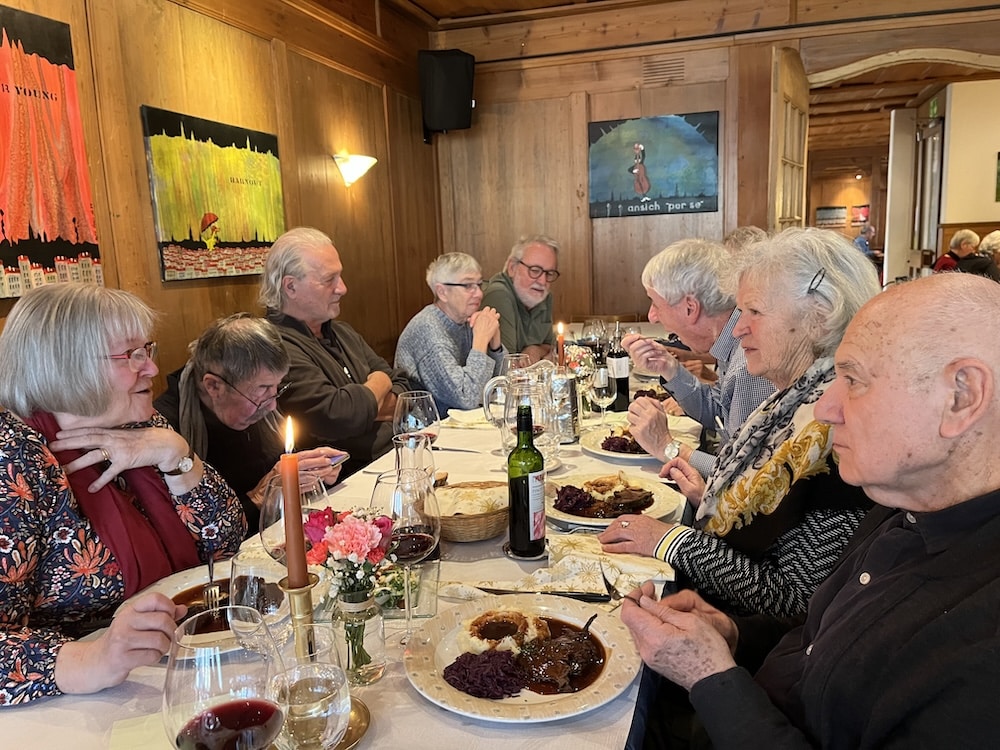 Es war, wie üblich, ein fröhliches, gemütliches Zusammensein, «dr Mocke» war zart und schmeckte gut, ebenso wie der Salat und das Dessert. Herzlichen Dank dem Restaurant!