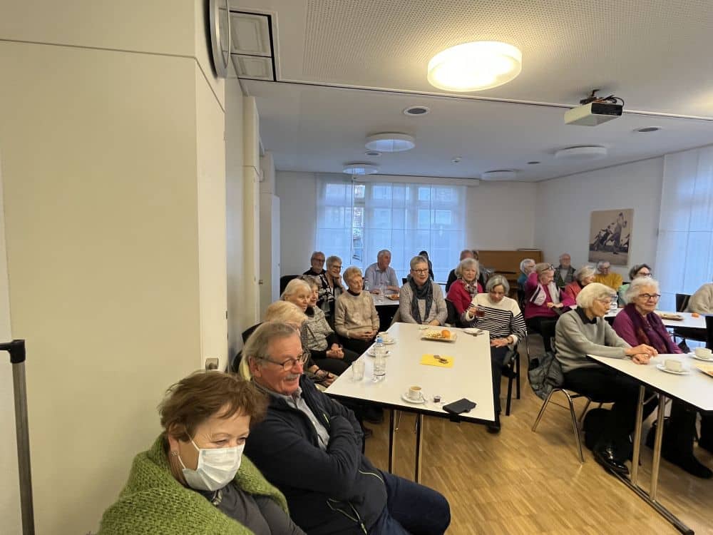 Bereits 1948 begann der Kommunismus in der Tschechoslowakischen Republik. 1960 ist der Name Tschechoslowakische sozialistische Republik (CSSR) in der Verfassung festgeschrieben worden. Krystyna erzählte nach dem Aufzeigen der vielschichtigen, gelinde gesagt für Schweizerinnen und Schweizer verworrenen Zeitgeschichte, mit persönlichen Erinnerungen und Erlebnissen auf, was es für sie und ihre Familie bedeutete, in einem kommunistisch organsierten Staat zu leben. Krystyna erzählte von den Pionierlagern (vergleichbar mit der Pfadi), von Tanzveranstaltungen bis zur Rationierung und dem Anstehen in Schlangen für den Einkauf des täglichen Gebrauchs. Ebenso von der Bespitzelung, die auch sie einschneidend zu spüren bekommen hatte. Sie wurde nicht ins Gymnasium aufgenommen, weil die Familie in die Kirche ging (gesetzlich war zwar die Religionsfreiheit festgehalten). Ein Raunen ging durch das Publikum und zeigte die Betroffenheit. Die Aufnahme Krystynas in das Gymnasium erfolgte später, als die Familie aus der Kirche ausgetreten war. So konnte Krystyna doch noch ihren Berufswunsch verwirklichen und wurde Ärztin.